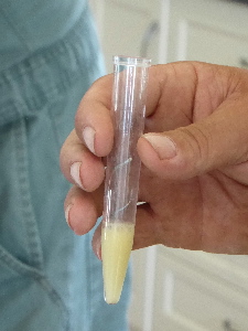 With Beef Week behind us we are starting to look forwards to the Clipex 50th Murray Grey National Show & Sale at Wodonga in April. We will be taking one bull up to the sale, Mount Major Khan, so tail hair samples have to be taken for pestivirus and parentage testing. The trick here is pull out a clump of tail hair by the roots as that's where the DNA is found, and make sure the sample is not contaminated by other cow hair/dog hair/fluff from the bottom of your pocket by sealing it immediately in the plastic bag.